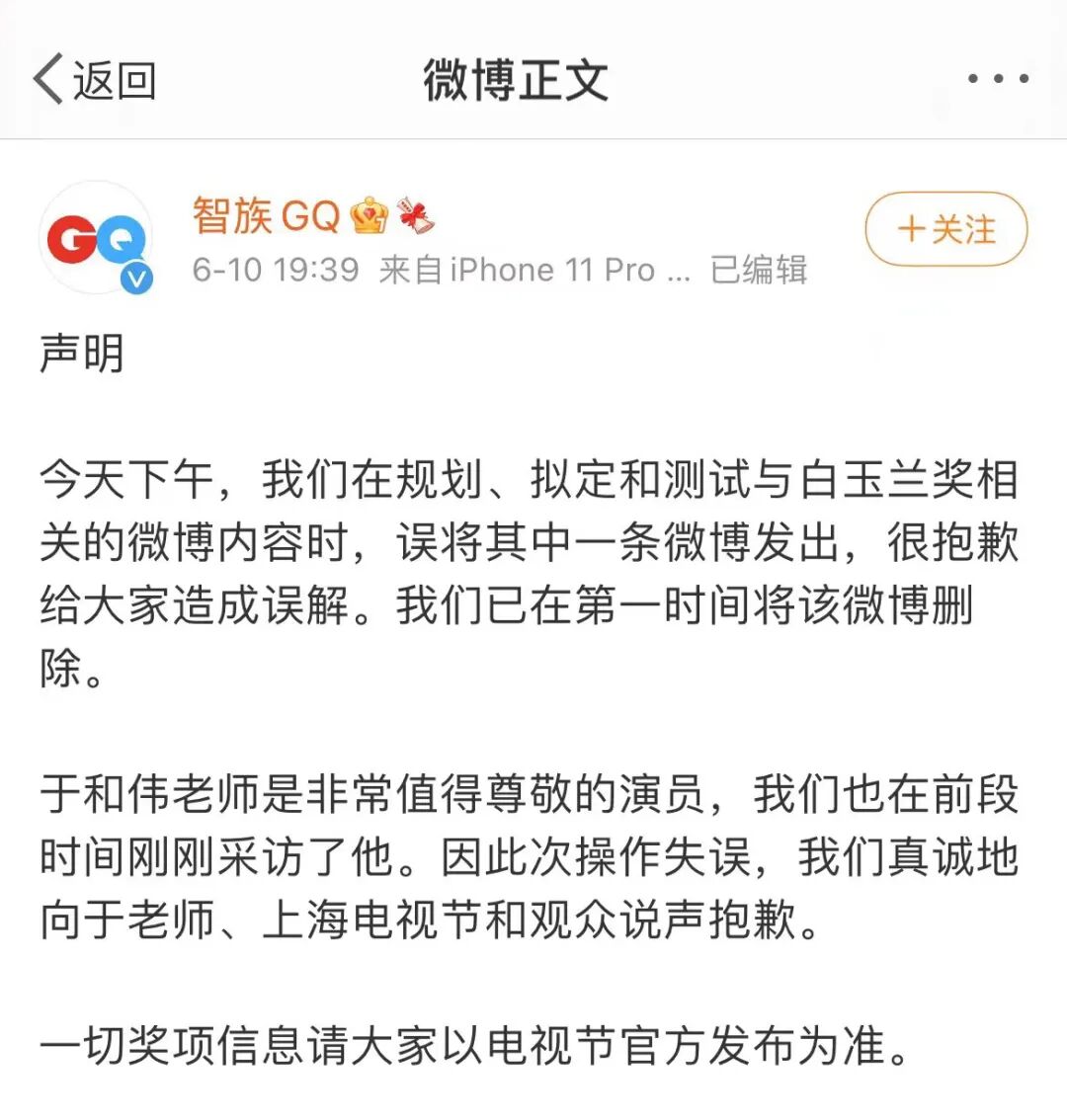漫长的60分钟过去后,GQ才出来道歉,称是乌龙:在规划、拟定和测试相关微博内容时,误将其中一条微博发出▼▼▼