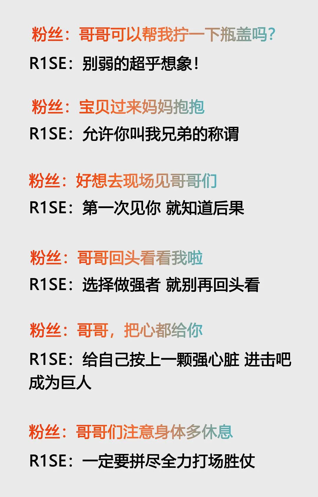 不一定是他们想成为R1SE,因为有粉丝,他们才是R1SE。