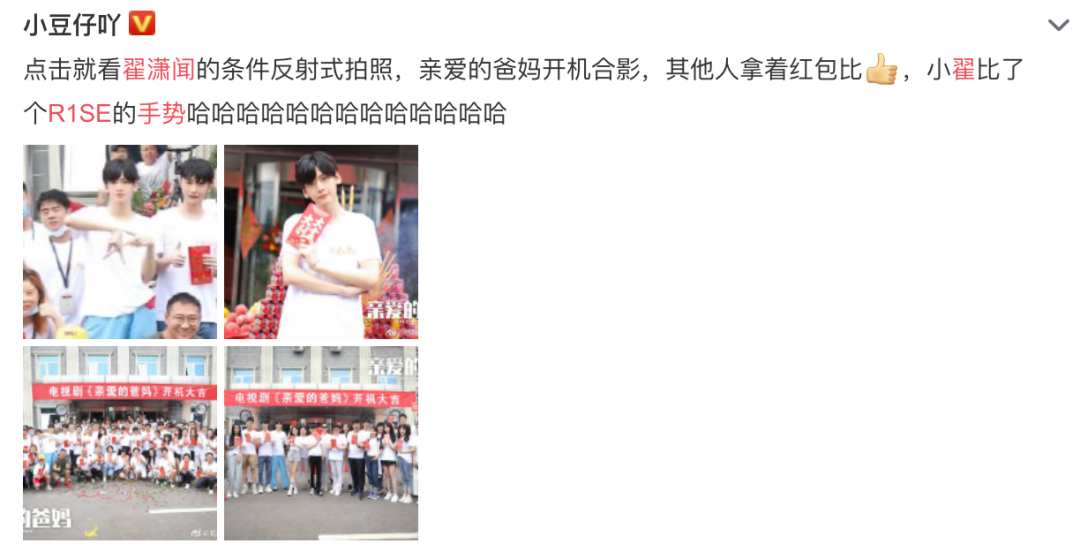 剧组拍摄,翟潇闻对着镜头条件反射就是一个R1SE手势▼▼▼
