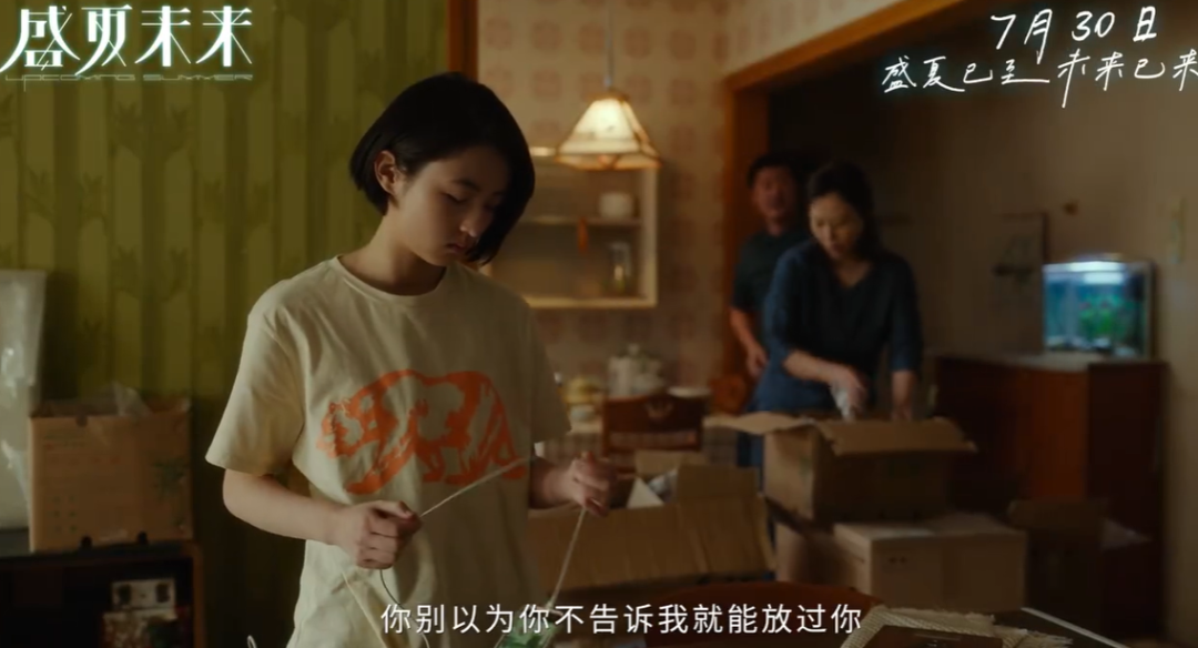 《快把我哥带走》跳脱出了爱情、初恋范畴,讲的是兄妹和亲情。《过春天》关注家在深圳,每天去香港读书的单亲家庭跨境学童▼▼▼《闪光少女》涉及二次元文化,用青春来展现传统的民乐文化▼▼▼《少年的你》探讨的校园霸凌细节,都让“青春疼痛”多了层社会表达▼▼▼但是直到《盛夏未来》,才真正是一部z世代同频的青春片。既观察到了中国式青少年的普遍成长经历,又关照到生长在网络新媒体时代人的性格。在家呢,只能孤独与SIRI展开牛头不对马嘴的对话,把音乐开到最大▼▼▼而对陈辰来说,家庭比高考更重要,宁愿擦掉半张卷子的答案,也想为父母争取一年可能复合的时间▼▼▼![]()