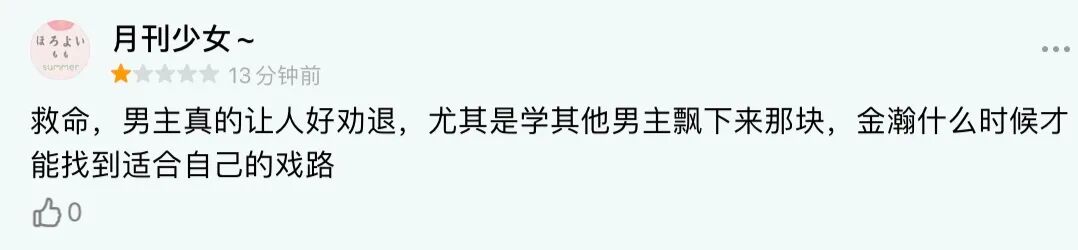 而我,刚准备看女主涅槃复仇的观剧幸福,就这样,轻而易举地被逆光的金瀚踩碎了。