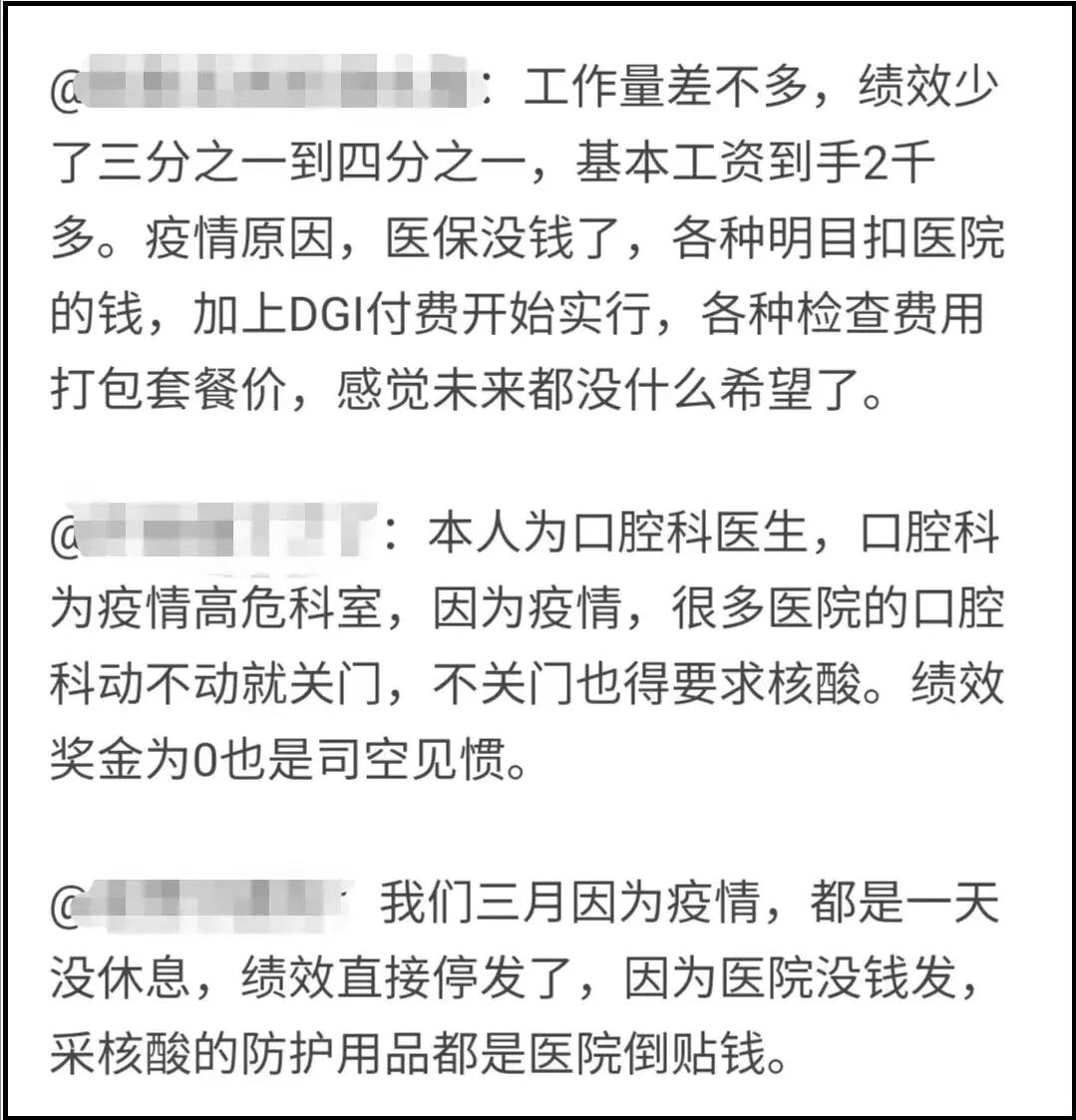 巨大的压力平摊到每个人的身上,让大家的工资和绩效一降再降,甚至有些医院支撑不住开始裁员。
