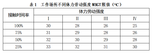 工作场所湿球黑球温度(WBGT)指数职业接触限值