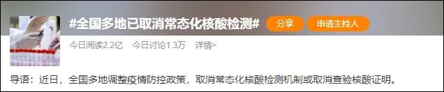 目前,全国多地已取消常态化核酸检测或查验核酸证明,得到了众多网民的一致“好评”:
