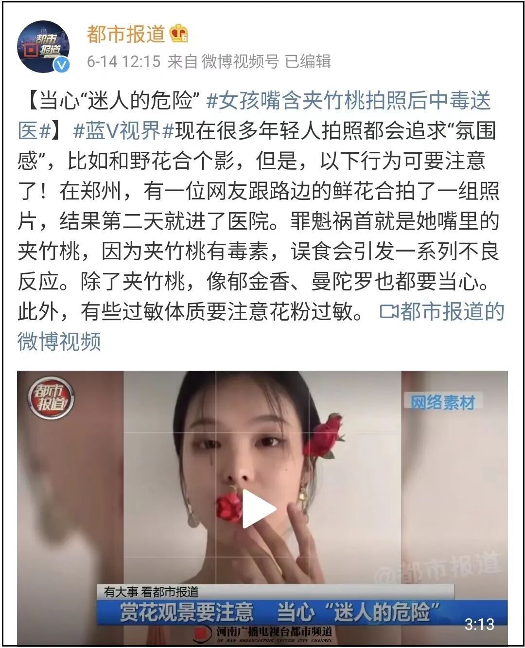 但是,也有些剧情是确实有依据的!比如前几天的“夹竹桃中毒事件”。