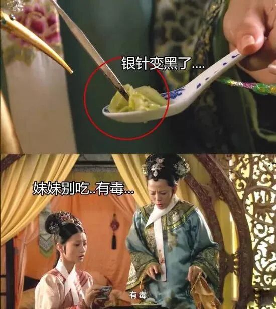 这不就是宫廷剧、武侠剧里常见的“银针试毒”嘛!