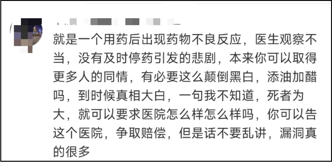 在没有权威鉴定机构或调查机构对事件进行分析判断之前,就给出医方有过错的结论。对于家属的讨公道,行内网友并不认可。