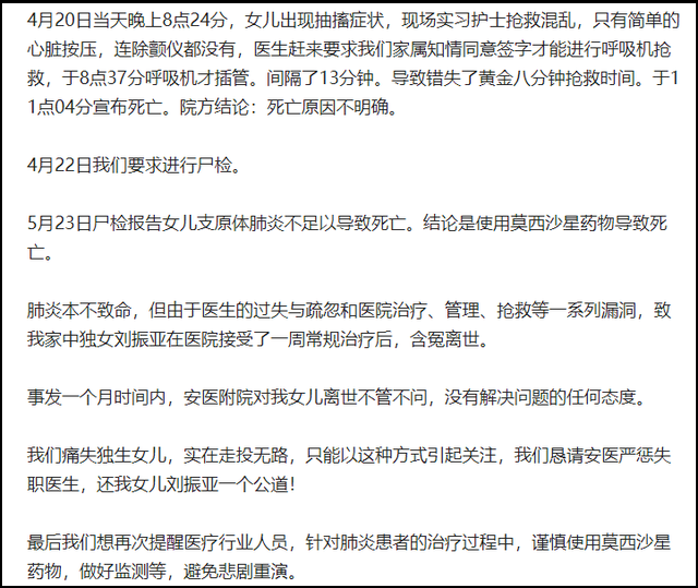 不知道从什么时候开始,发微博、舆论造势、博同情、谈赔偿,成为了患方的救济途径。患方公布的内容都是片面的,言词犀利指责医院,大量公布患者信息、照片。新闻媒体带节奏,虽然题目注明“疑似医疗事故”,却指出 “最终导致无辜离世”,呼吁“医院方能够正视错误,对受害者家属做出相应的赔偿”。