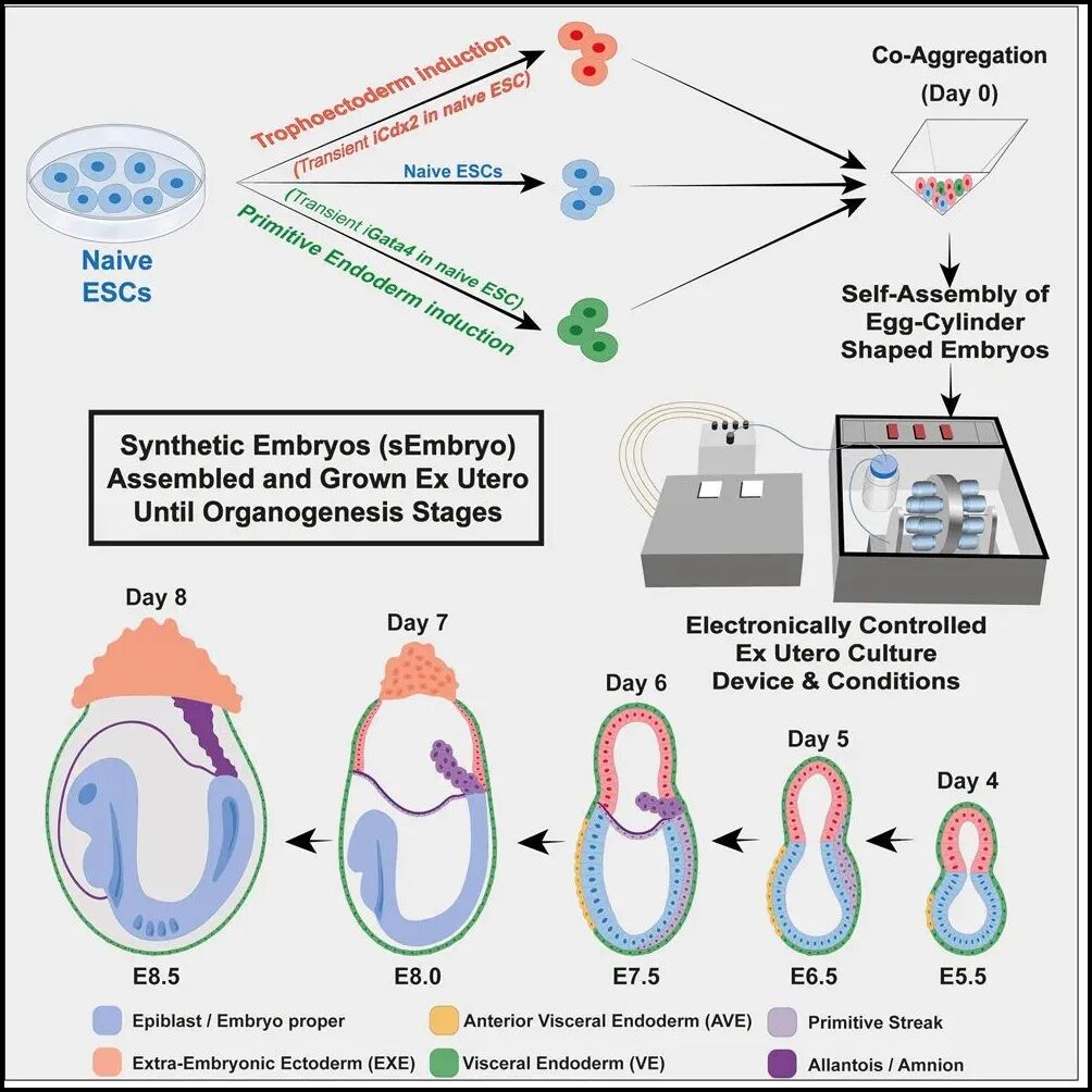 2022年8月1日,以色列魏茨曼科学研究所的 Jacob H. Hanna 团队在 Cell 期刊发表了题为:Post-Gastrulation Synthetic Embryos Generated Ex Utero from Mouse Naïve ESCs 的研究论文[1]。