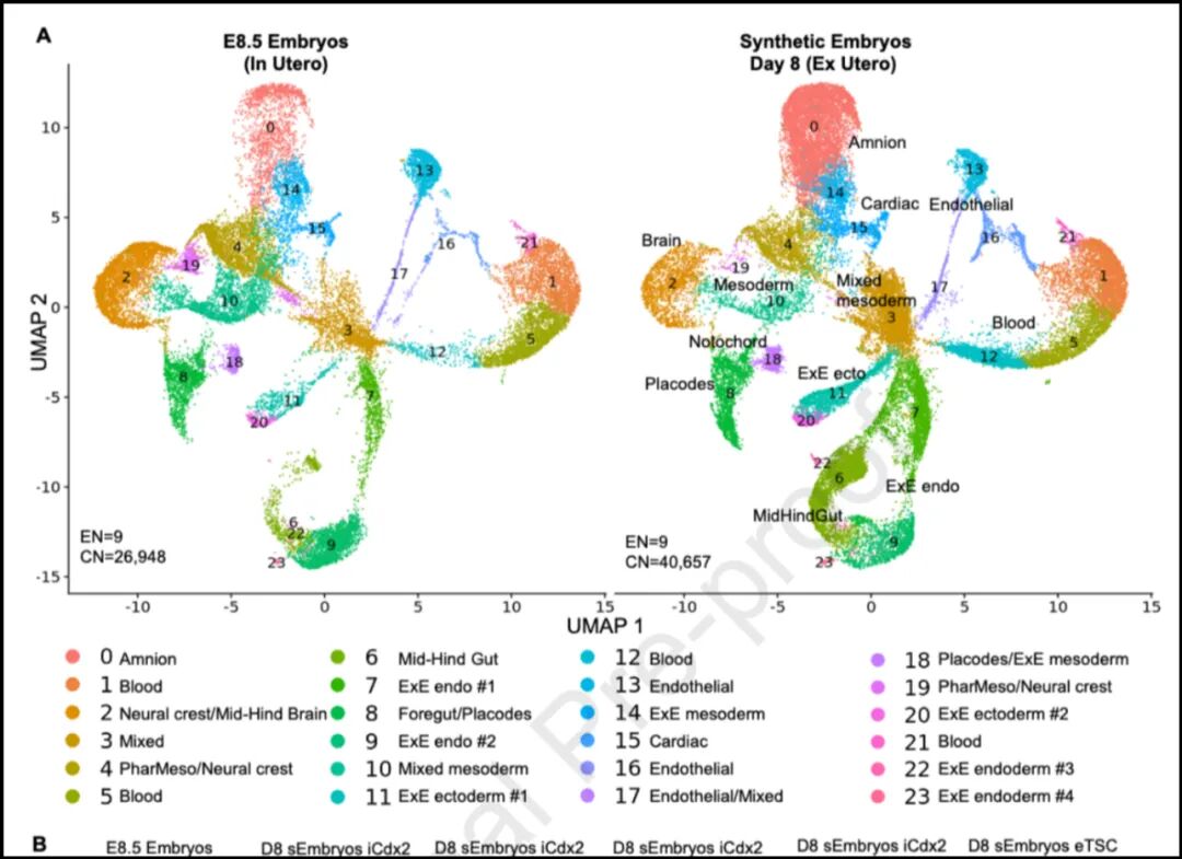 合成胚胎和天然胚胎的基因表达模式的相似度高达95%