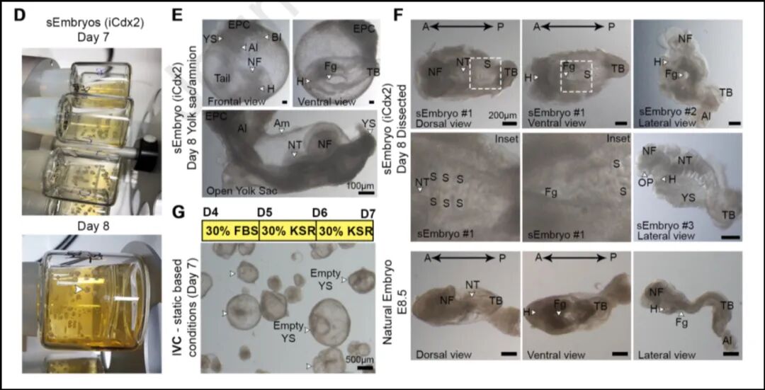 值得注意的是,虽然这项研究成果的进步性令人惊叹,但它也存在一些局限性。例如:第8.5天仅仅是胚胎发育的早期阶段,距离整个妊娠期结束还太早;每10000个细胞团中,大约只有50个自组织成胚胎,其余部分均发育不良。
