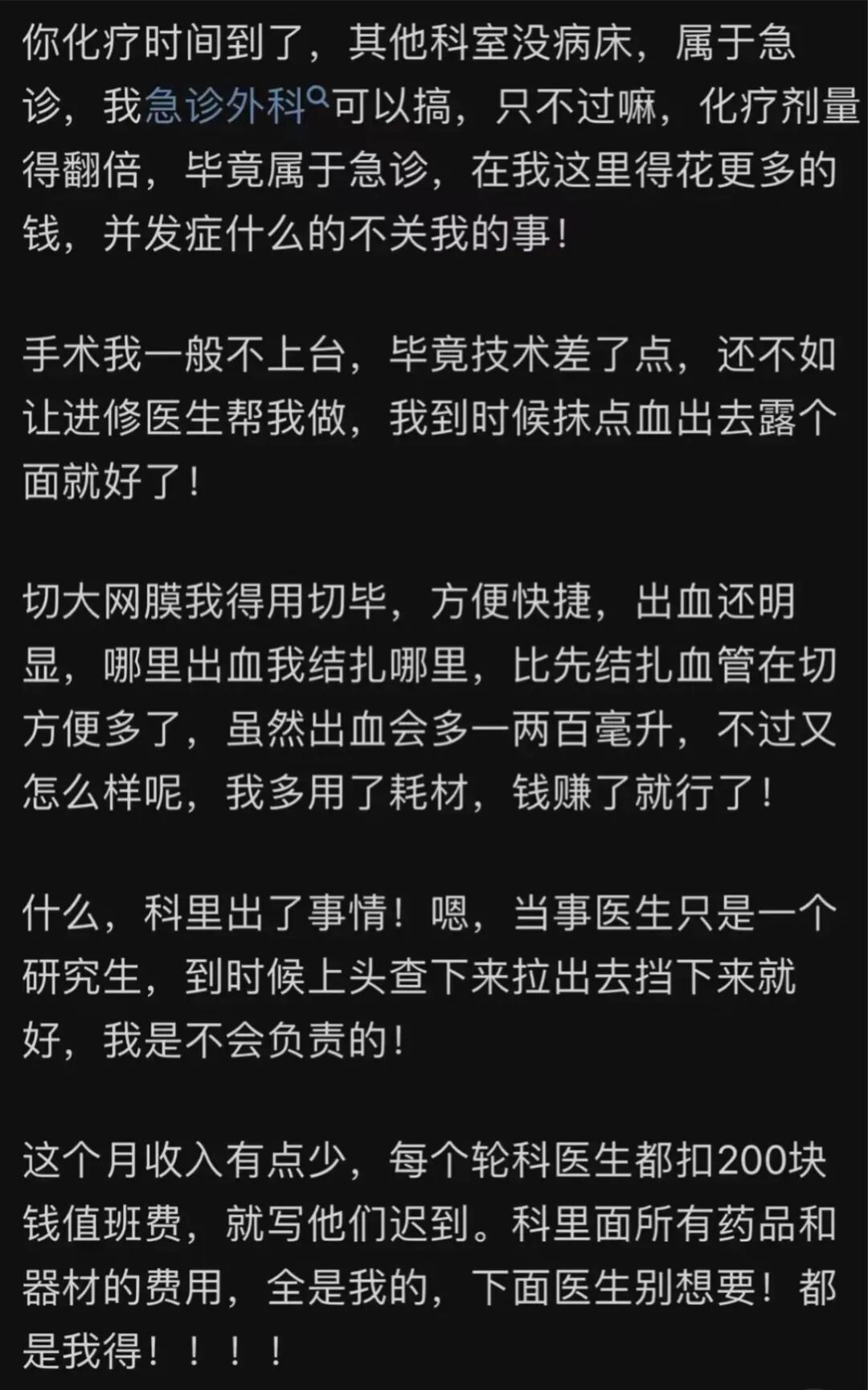 那么,大家肯定忍不住好奇,究竟网友爆料了什么,竟让一个大三甲医生毁了前程,我们一起来看看(以下内容皆为爆料,真实性有待考证):
