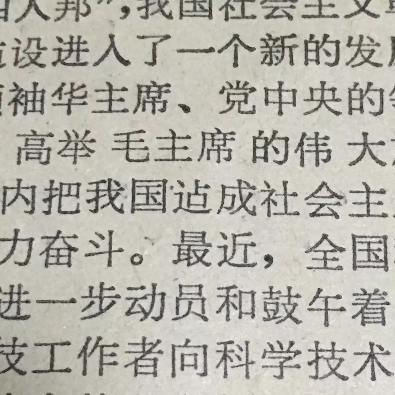 翻看1978年1月、4月出版的旧报,赫然发现《人民日报》和《光明日报》上蹦出了很多奇奇怪怪的文字!如果不联系前后文,许多字根本就不敢认。比如发展的“展”,就是一个“尸”字,底下一横;英雄的“雄”,写作“厷”;打算的“算”,写作“祘”;建设的“建”,写作“迠”;疾病的“病”,写作“疒”;正副的“副”,写作“付”;停止的“停”,写作“仃”……