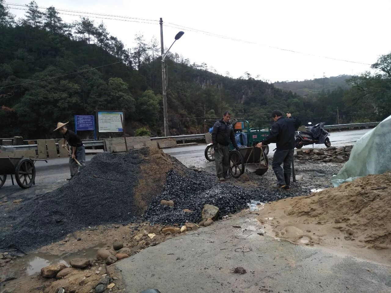 11月29日,大东坝镇冒雨推进小城镇整治项目建设。