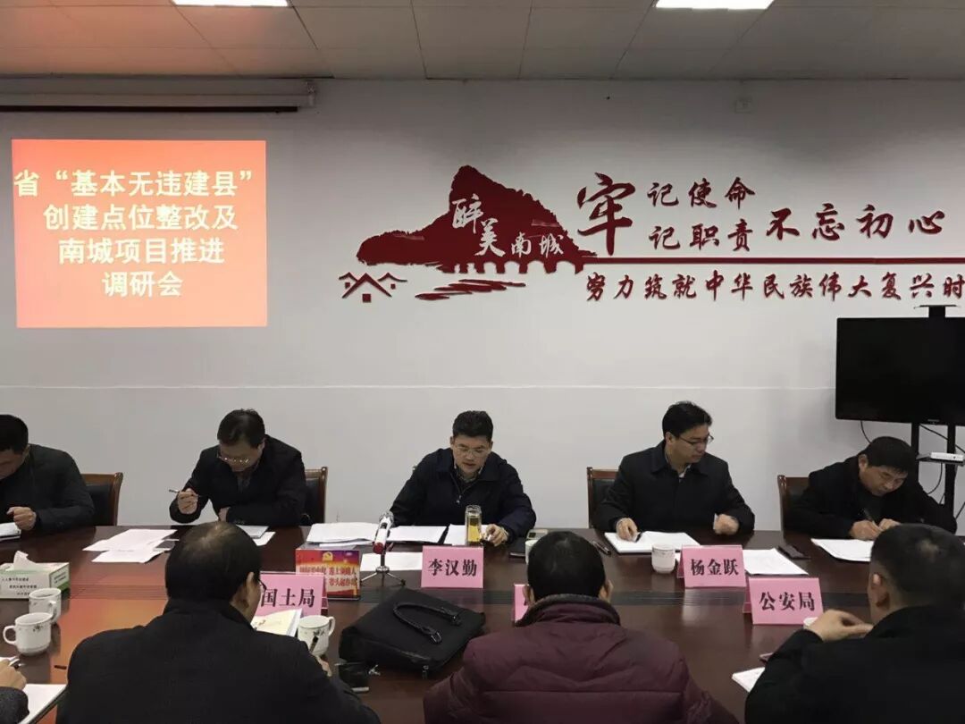● 1月8日下午,县委副书记、县长李汉勤调研、督促省“基本无违建县”创建点位整改及南城项目推进工作,县委常委、常务副县长杨金跃,副县长潘永水等参加。