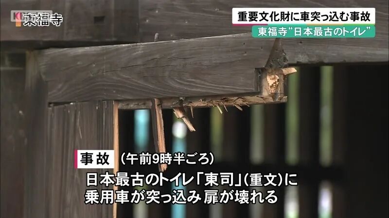 近日,在京都市东山区本町15丁目的东福寺内,发生了一起事故,文物保护团体职员的车辆不小心撞进了日本最古老且最大的厕所建筑“东司”。