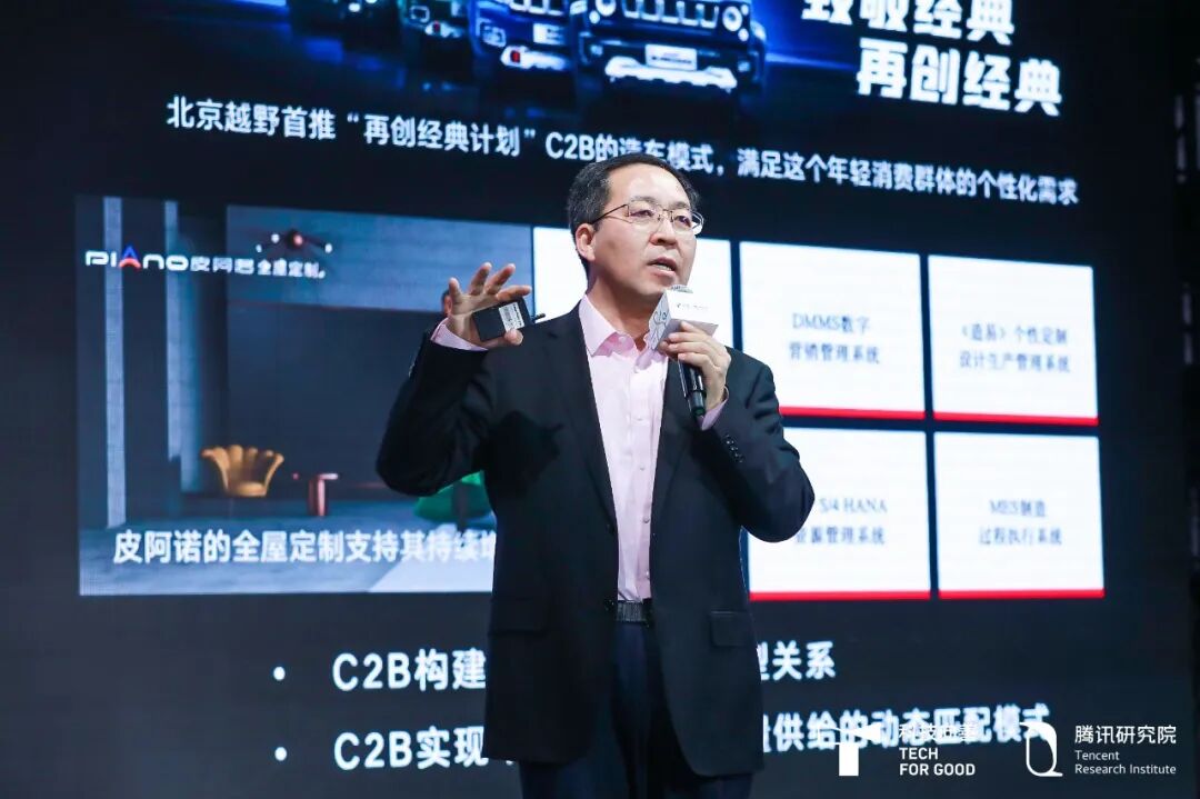 另外C2B未来将重塑供给模式。今天C2B一方面最理想的状况是用户在客户端直接下单到工厂,老实讲绝大多数企业很难做到,包括今天红领、海尔也都在路上。北京吉普最经典的品牌也开始利用C2B开发新的越野车,比如说BJ40、80,他们的越野车在中国市场销售份额获得第一位。我看了他们所谓的C2B模式,包括车的设计,是让年轻人、让数字化年轻代主导,举办外观设计大赛,组织功能设计大赛,其实也是大量吸收用户的需求,把C端的一些需求点、输入点加进来,来开发这个汽车,这跟以前完全靠整个公司管理层拍脑子做完全不一样了。