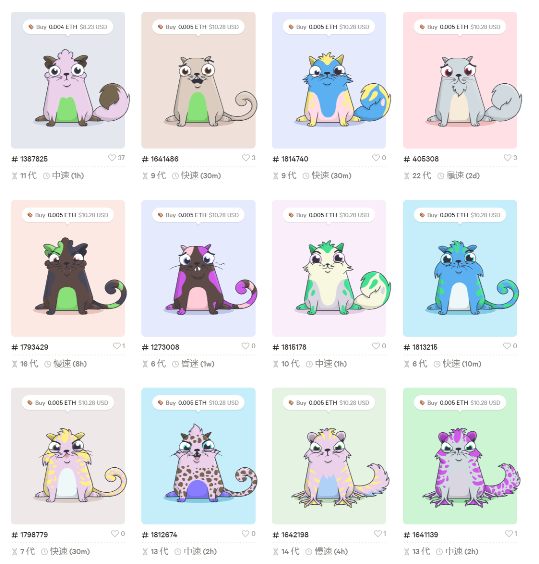 简单来说,参与这场游戏的玩家,可以通过Cryptokities来收集繁育一种名叫Cryptokitty的虚拟宠物——虽然它们在本质上依旧被视为虚拟货币,但和我们熟悉的比特币以及以太币最大的区别,就在于每只Cryptokities都利用区块链的数字加密技术,通过排列组合各种元素,产生出独一无二的个体特性。
