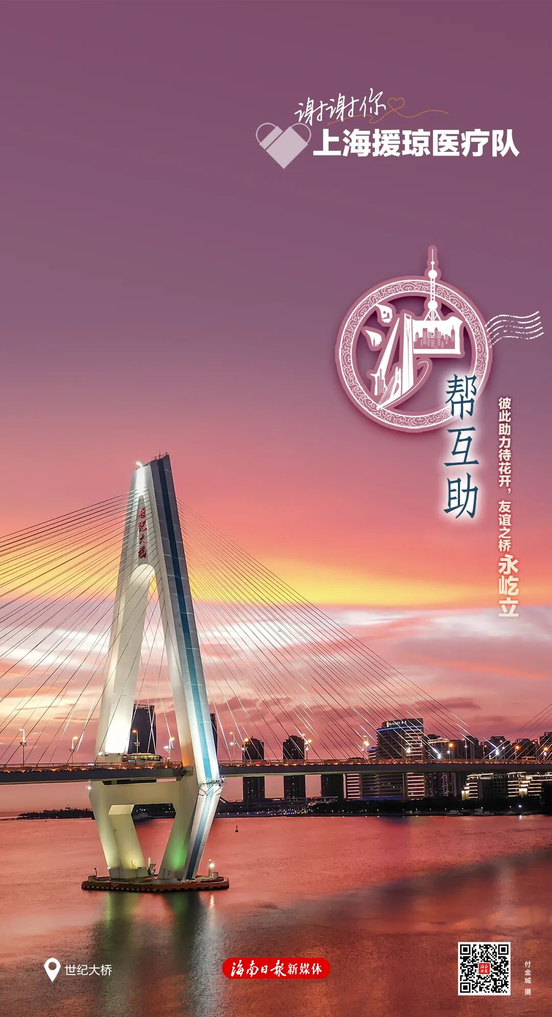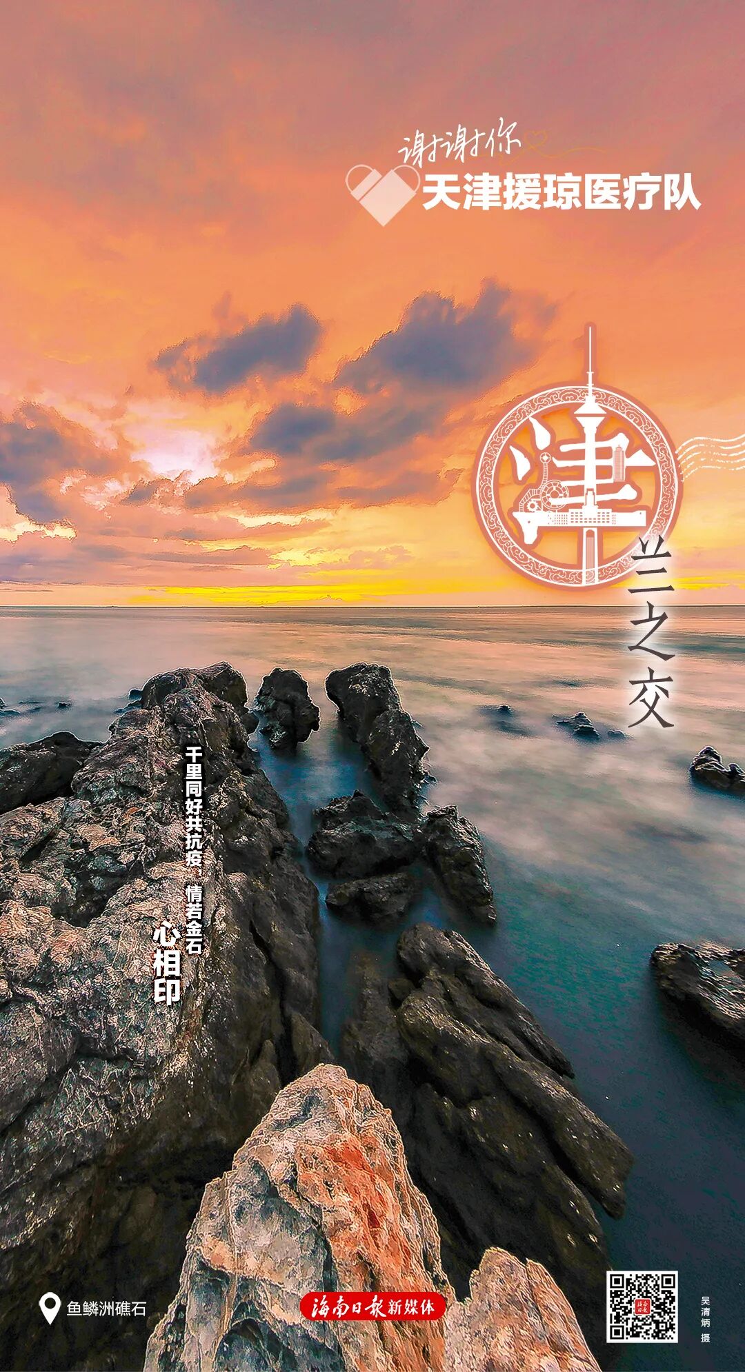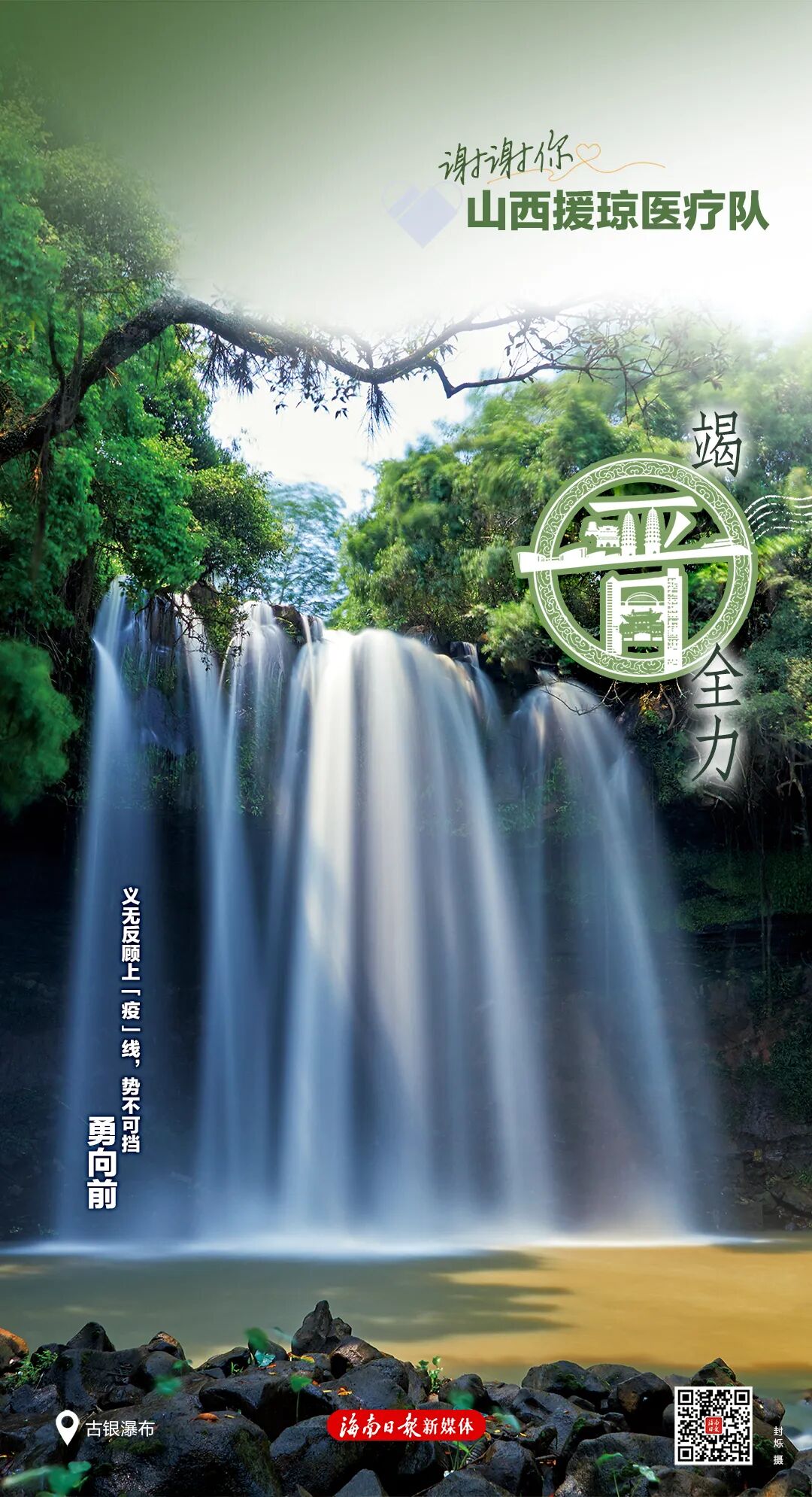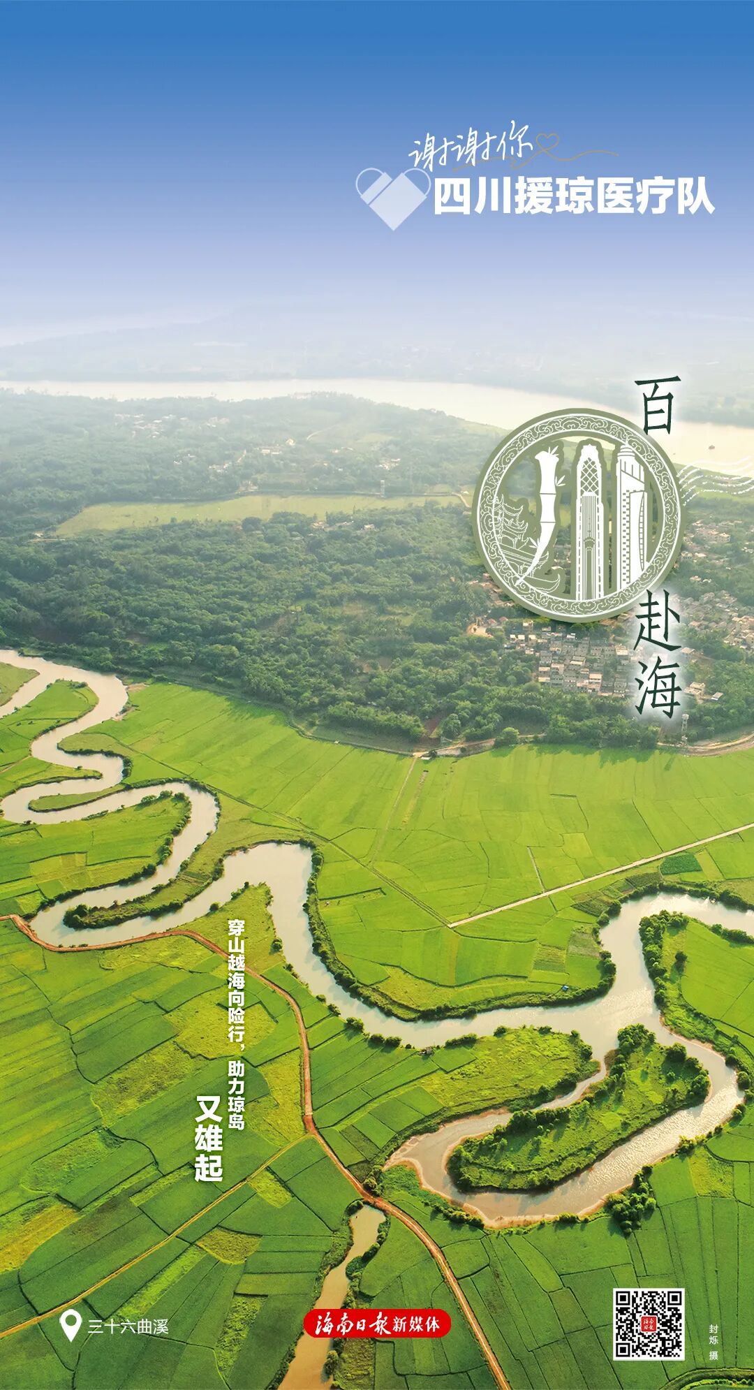 每张海报右下角有一个二维码,扫码可以浏览一封由海南省委、省政府向每位援琼工作者发出的感谢信,以及一个回顾了援琼医疗队与海南并肩作战的珍贵历程与暖心瞬间的创意短视频,以此致敬最美逆行者。