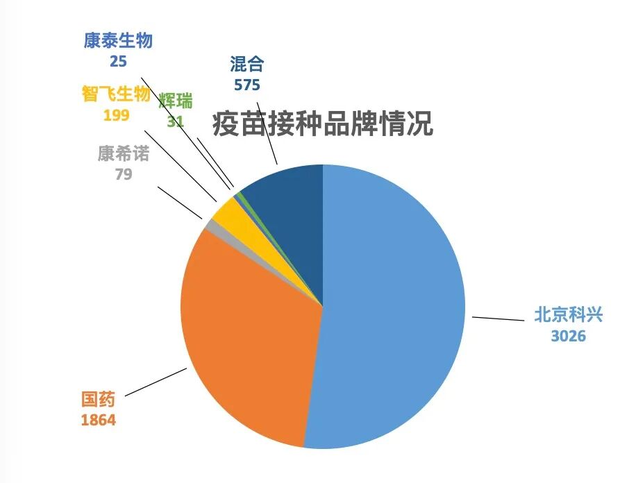 5799份已接种疫苗的问卷中,科兴和国药占比最大,其中52%的人接种的是北京科兴疫苗。