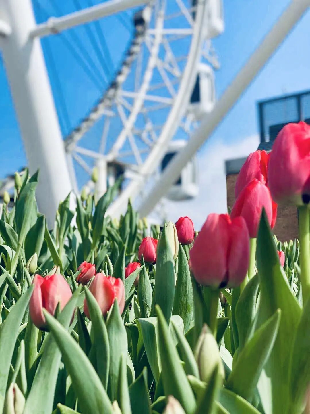 并拍摄摩天轮广场郁金香花海照片