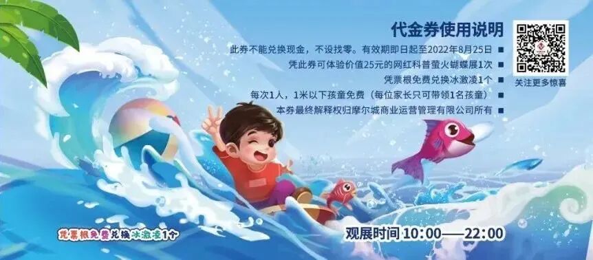 活动日期:水上欢乐派对玩耍过后,凭票根可免费领取冰激凌一个!