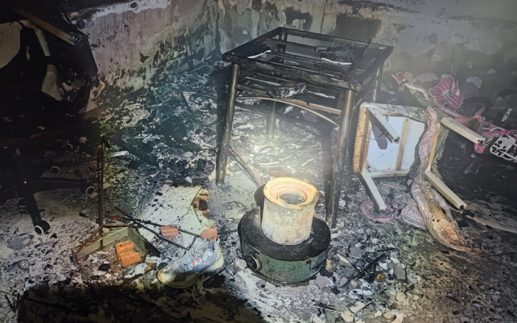 户主睡前使用煤炉烘烤鞋子