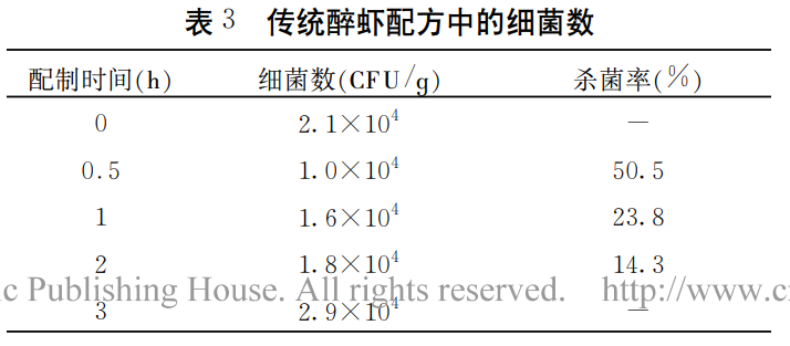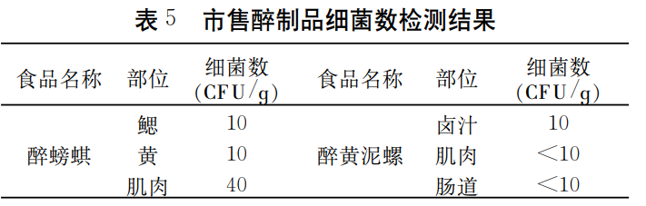 有实验对比了市售醉虾和厨房自制醉虾的细菌残留情况,市售醉制品醉螺、醉螃蜞(瓶装制品)带菌量较低,细菌总数只有10~40CFU/g。厨房自制品在数小时至数天后,都有活菌残存。