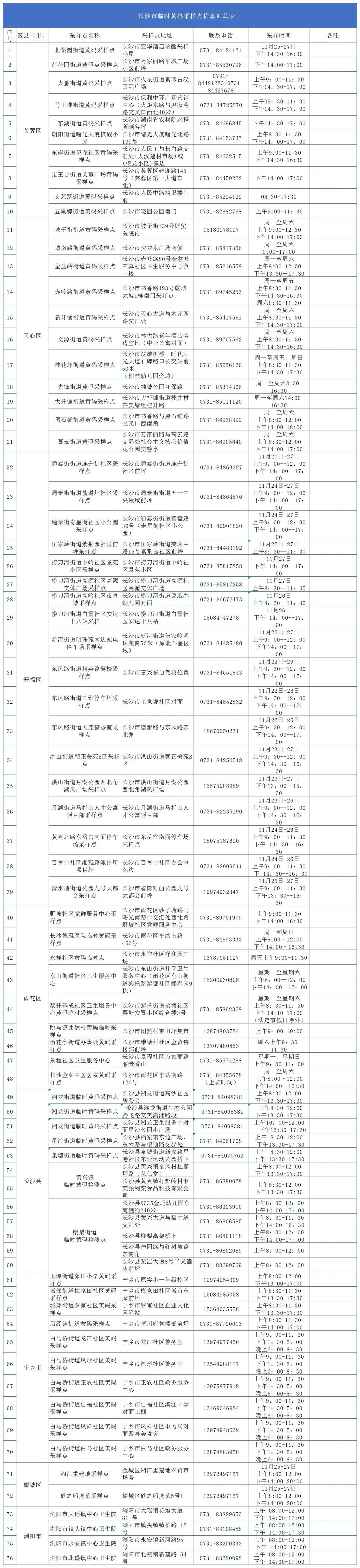 长沙市常态化黄码采样点