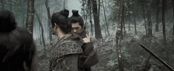 剧中有多场在林中展开的桥段,让我们回到早期武侠电影的语境:树影婆娑、风影摇曳,人在其间穿梭,移步换景。