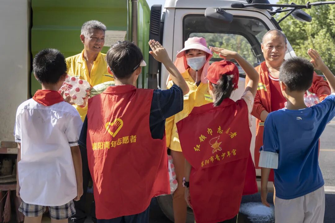 8月12日上午,襄阳市青年志愿者协会携手襄阳草草义工协会组织樊城区的小小志愿者们,共同开展“争当城市美容师”社会实践活动,让孩子们近距离接触环卫工人,体验环卫工人为城市的洁净所付出的努力和辛劳。并为在工作岗位上的环卫工人送去矿泉水、西瓜。