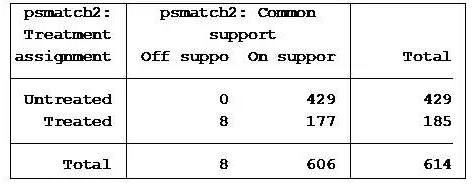 global ylist logmed_per5global treat fasmoke1_whyglobal xlist falcohol3_why fasmokenum2_why smoke_longth logindincglobal xlist falcohol3_why logindincpscore $treat $xlist, pscore(mypscore) blockid(myblock) detail,if household_hsy==1psgraph, treated($treat)pscore(mypscore)gen logitpscore = log(mypscore/(1-mypscore))qui psmatch2 $treat, outcome($ylist) pscore(mypscore) caliper(.01138) neighbor(1)pstest $xlist, treated($treat) both graph, if household_hsy==1
