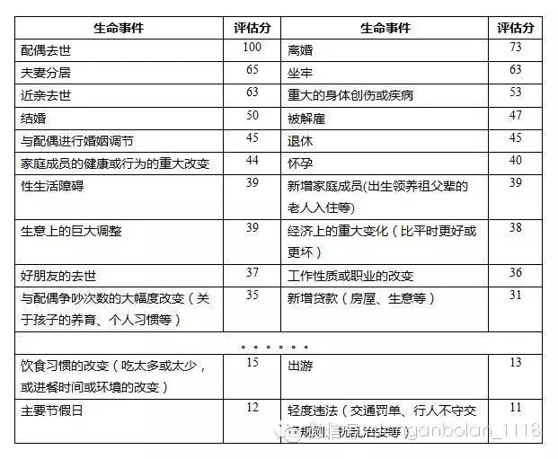 生命事件评分表是心理学常用的评估参考,分越高越容易得抑郁症:
