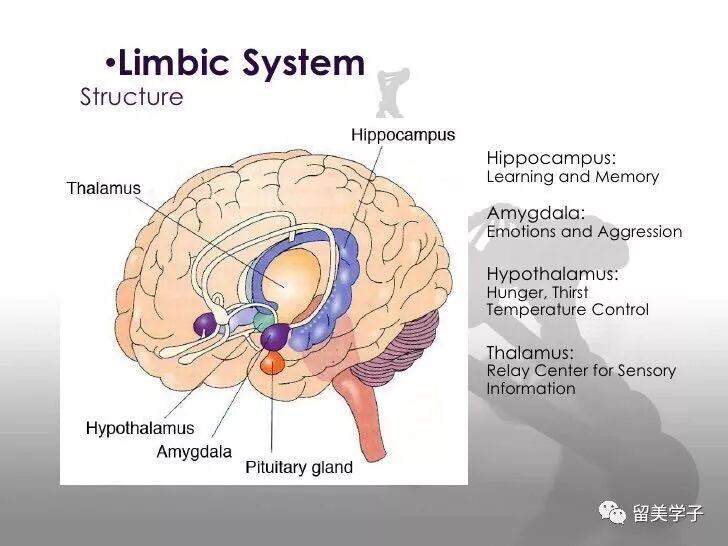 大脑边缘系统(Limbic System)包括海马体、杏仁体、丘脑、下丘脑等。这是大脑控制情绪、思考、睡眠、食欲和行为的中心,包括成瘾的机制;它的失调与抑郁有直接的关系。另一个因素是脑细胞间神经介质和激素的不平衡:血清素、多巴胺和去肾上腺素。Functional MRI 显示抑郁症病人大脑的结构与正常人不同。虽然还不能以此诊断,但证明了抑郁症是一种生理性的疾病。