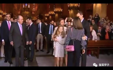 那一刻,她的婆婆,79岁的索非亚王后兴高采烈地走出弥撒会场,手牵着两位公主,在莱昂诺公主额前轻吻后拥着孙女拍照。这时莱蒂西亚走到女儿们面前迅速擦拭了公主被吻过的前额,动作细节中透着排斥,憎恶和拒绝,并公然在三人面前试图阻挡镜头。