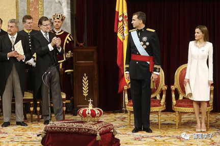 费利佩的加冕典礼,面前放着的是十八世纪的王冠