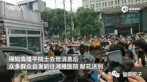 在殡仪馆外,还有市民排队为袁老献花。排在队伍最前面的,仍是一张张年轻的面孔。