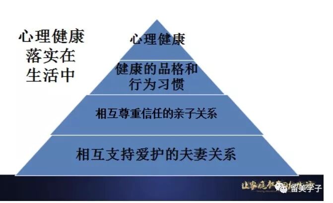 落实在生活中,就是相互支持爱护的夫妻关系和相互尊重信任的亲子关系。它们是健康的自我概念、安全感等心理健康的基石。