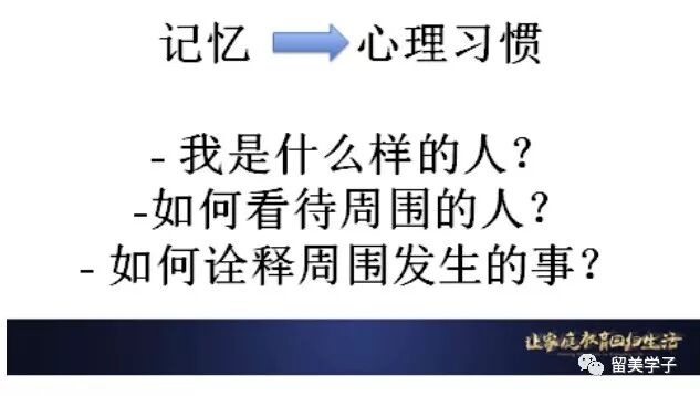 孩子们的选择,有50-60%是基于过去习惯性行为、经验和记忆的积累。特别是如何看待自己?如何待人接物?如何诠释身边发生的事的习惯? 而这些习惯,根基来自和父母在家里日复一日、年复一年的互动。