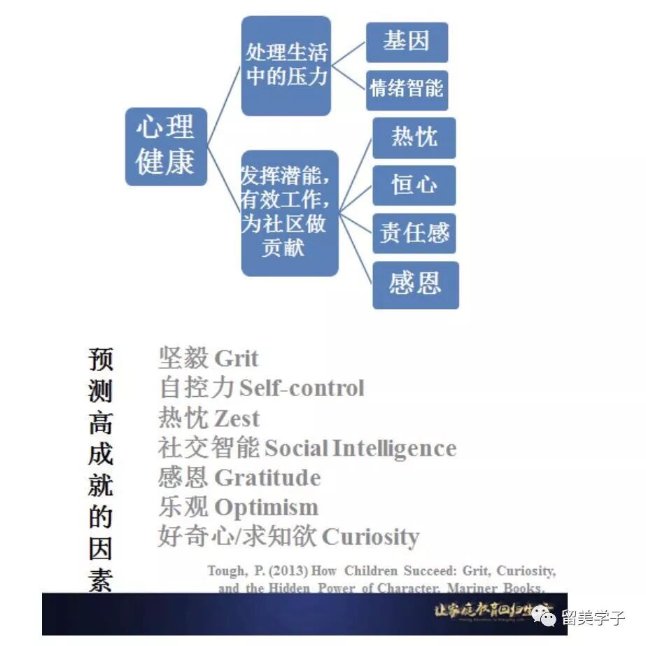 因为,想达到这个“心理健康”状态,里面蕴含着上进心、责任心、毅力、抗挫折能力、爱心等优良的品质和行为习惯。这些又是几十年来心理学研究发现和成人后的“成功和幸福感”相关最显著的因素!