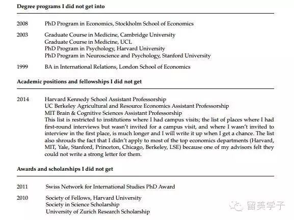 普林斯顿大学助理教授 Johannes Haushofer 名叫: “CV of Failures”(失败经历的简历):