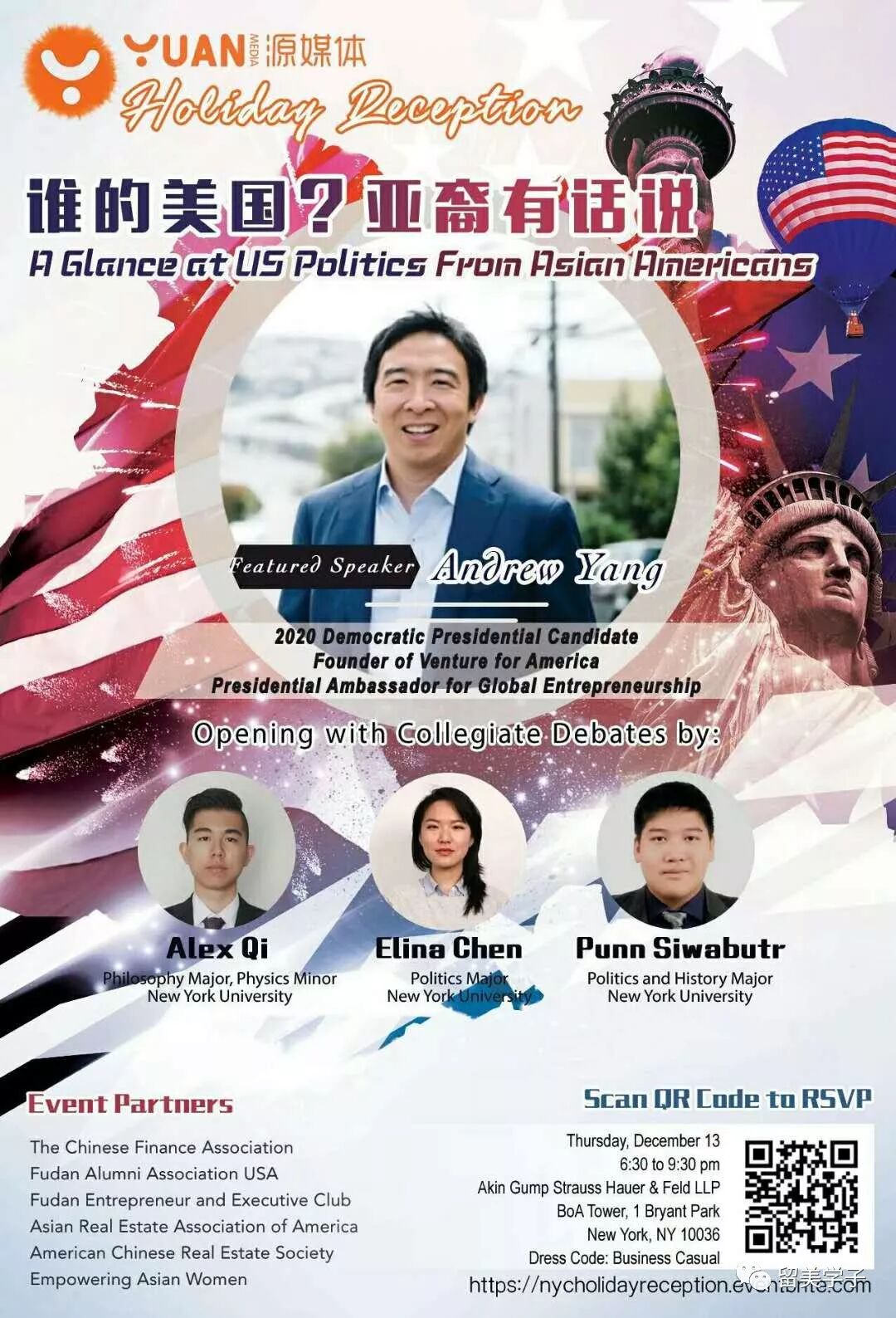 12月13日,“源媒体”主办“节日招待会-谁的美国?亚裔有话说”,邀请到杨安泽,和大家分享作为亚裔在美国行使公民权利与责任的经验和观点,并为下一代的参政、议政提供建议!