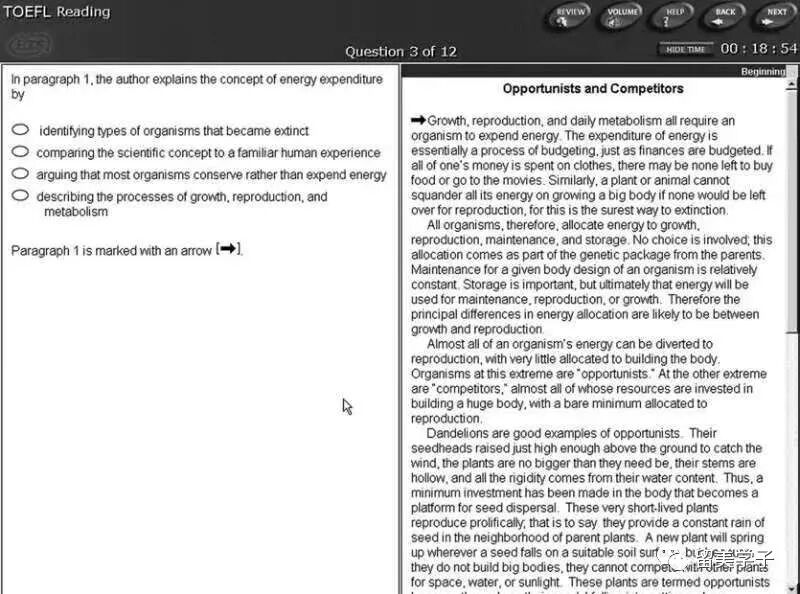 这里不需要担心这么做会占用大量时间,因为托福阅读题给的时间绝对充沛。托福阅读文章一般在700字左右(ets官方数据)平均英语阅读速度在250字每分钟左右,所以读这一篇文章所需时间就2.8分钟。