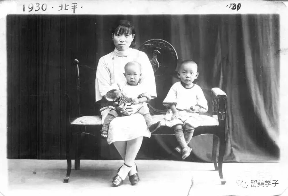 母亲怀抱1岁的袁隆平,哥哥隆津坐在旁边