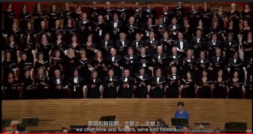 这如果要让业余华人团队唱现代作品,本身就会有一些困难,但是在这个作品中,这种传统和现代的结合是一种有机的结合,它还跟歌剧的方式也交集到一起,再加上交响乐队也交织在一起,特别像第七乐章,表现暴风雪和大雪崩的那段,人声乐器完全混到一起,你实际上根本搞不太清楚谁是谁了,以一种混合的方式产生一种非常震撼的效果。