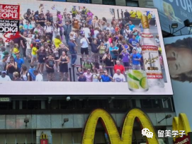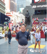 时代广场的超大电子显示屏,大学同窗管蓉文与笔者在画面正中