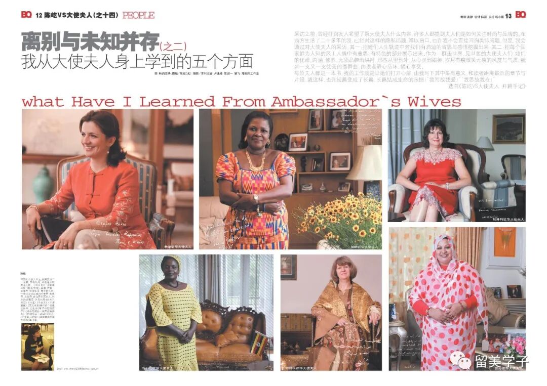 首位在主流杂志上整体呈现世界驻华大使夫人风貌的作家;