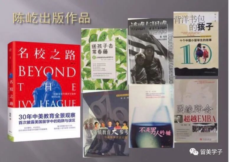 《诱惑与困惑》《美国素质教育大参考》《背洋书包的孩子》《因缘际会》《不是男人的错》《送孩子去常春藤》《名校之路》等著作连续数年,关于教育、企管、情感的畅销书,水到渠成的相继问世。