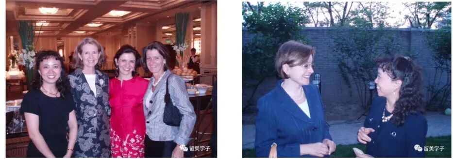 姐妹般情谊 左:与瑞典、希腊、葡萄牙大使夫人 右:与罗马尼亚大使夫人