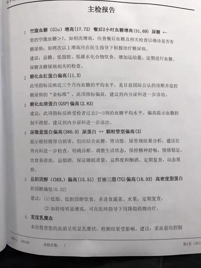 1月20日,我接受碳9学员戴启彬的建议,去309医院做了全面体检,24日中午拿到结果。当我拿到结果的时候看到第一行就吓了一跳,体检结果是按照对身体健康的危害程度从重到轻排序的。